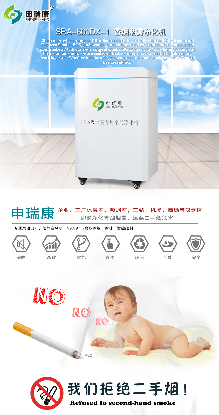 申瑞SRA商用空氣凈化機系列采用電子集塵方式,快速高效凈化室內PM2.5,同時釋放負離子,增加空氣清新度,是您室內空氣品質改善的首選。
