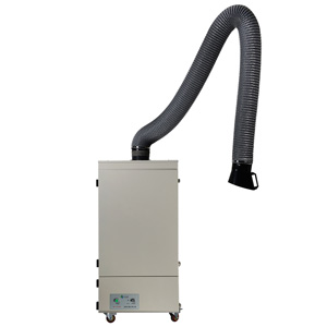 | 針對波峰焊、多工位焊錫等焊接煙塵處理,本公司推薦使用SRA-1200XP這款煙塵凈化器,該凈化機是專門為煙塵異味比較嚴重的場合而設計的。 SRA-1200XP煙塵凈化器采用高風壓、低噪音風機,能有效的吸取煙塵顆粒,并最大限度的延長濾芯的使用壽命。其控制系統采用PWM調速,可根據煙塵產生量實現對風量的連續精確調節;該控制系統設計了指示燈光報警裝置,當濾芯堵塞,紅色指示燈點亮,提示更換濾芯。 該凈化機的過濾系統由預過濾、主過濾和氣體過濾三部分組成。 預過濾采用風琴狀濾袋,能有效阻擋氣流中比較大的煙塵顆粒,從而避免主過濾層過早的被堵塞,延長主過濾器的使用壽命;同時袋裝結構,容塵量更大,使用壽命更長。 主過濾采用玻璃纖維材質的HEPA高效濾芯,V型折疊構造,具有比表面積大,容塵量大,風阻小等特點;高效過濾器凈化顆粒直接可達0.3微米,凈化效率達99.99%。 氣體過濾層由申瑞工程師針對煙霧類型專業配置,主要采用粒狀活性炭顆粒及其他氧化劑、分子篩等組成,能有效吸附氣流中有毒有害氣體。