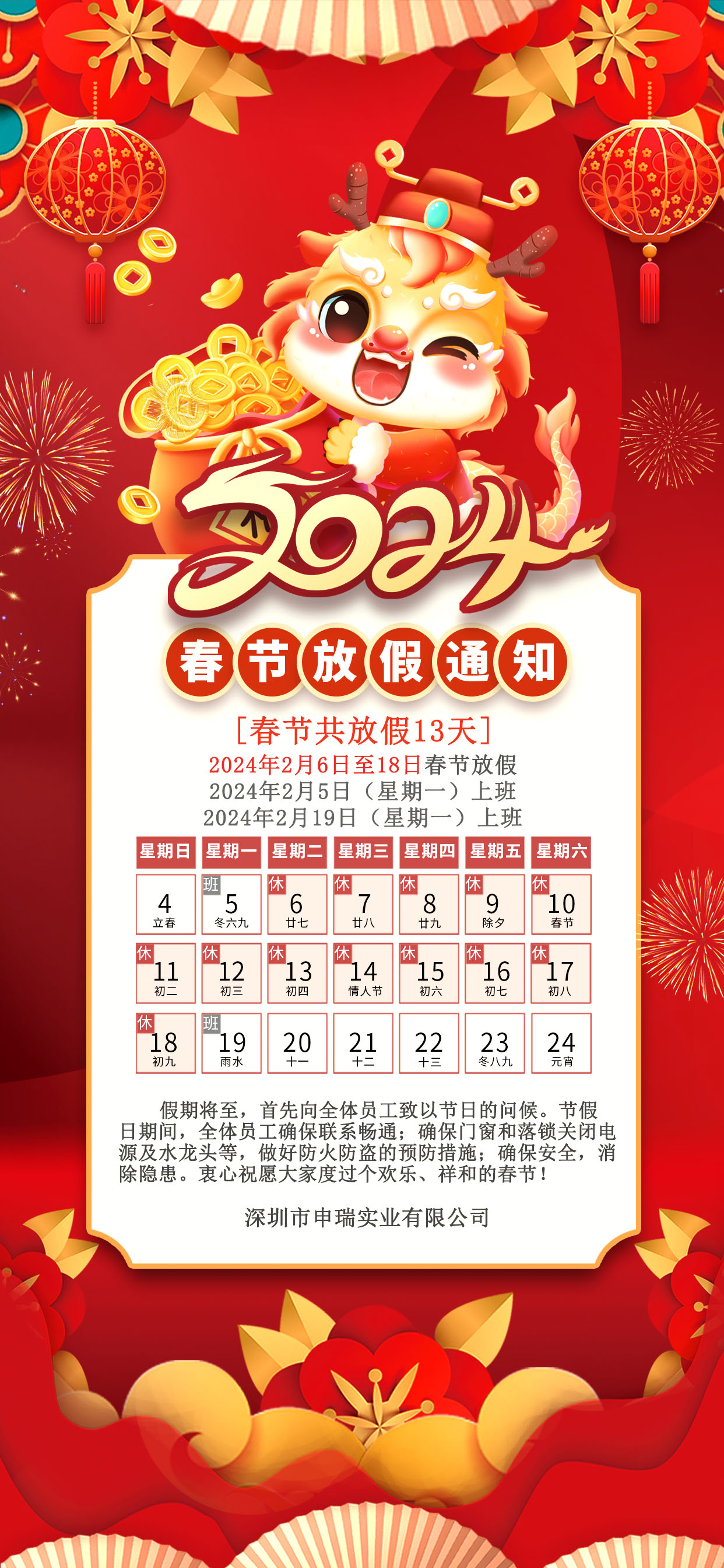 申瑞|2024年春節(jié)放假通知
